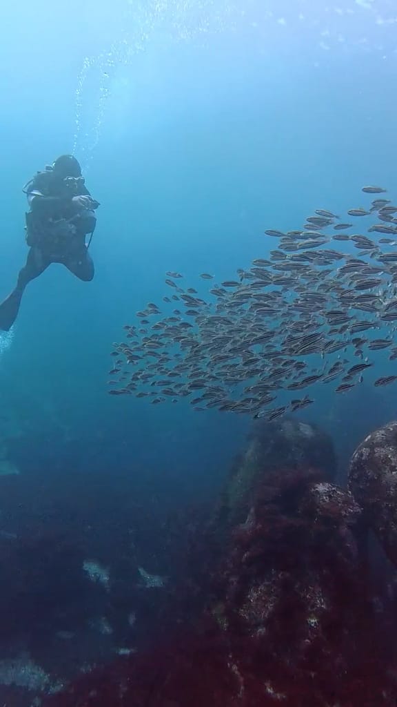 神子元では、ハンマーヘッドシャークの群れや圧倒的な魚影に出会えるチャンスがあります。